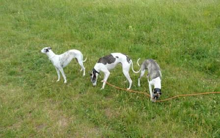 "..... mit Pajti klappt alles sehr gut. Er ist ein extrem friedlicher Geselle. Nur Milow ist etwas eifersüchtig. Da muß er sich aber daran gewöhnen. Nachdem es gestern nicht mehr so heiß war, waren wir auf der Hundewiese spazieren.
