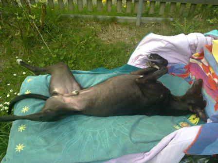 Auch mal wieder ein paar schöne Bilder fällig. Den Anfang macht Billy (verm. 09.03.2009), der es sich bei Andrea in München gut gehen lässt. Hier teilt er sich mit dem Opa den Liegestuhl. Danke Andrea!