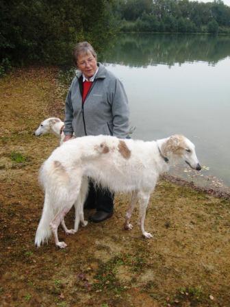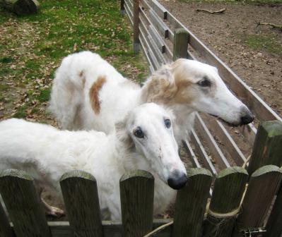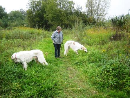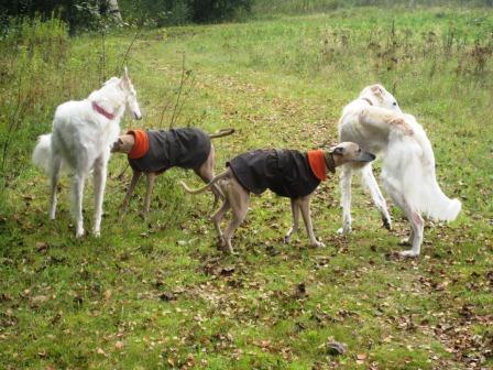 Oje, noch Fotos von letztem Herbst, als Gabi und Claudia zu Inge mit ihren drei Barsois gefahren sind. Danilo (vorne, verm. 25.04.2010) und Dobby (verm. 13.09.2009) geht es bestens. Danke Inge!!