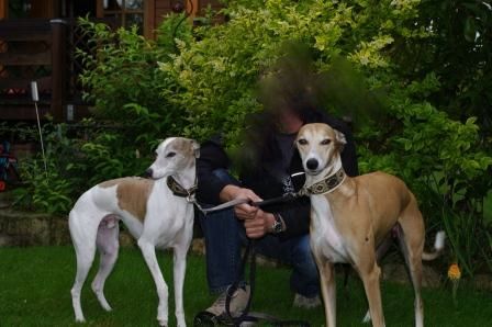 Neu in der Vermittlung sind zwei Whippetrüden, rot mit weißen Abzeichen und weiß mit gestromten Platten. Die beiden kastrierten Brüder werden diesen Sommer fünf Jahre alt und haben bisher in einer Familie gelebt, kennen also alle Situationen eines normalen Haushalts. Nun werden sie zu Scheidungswaisen und suchen ein neues Zuhause.