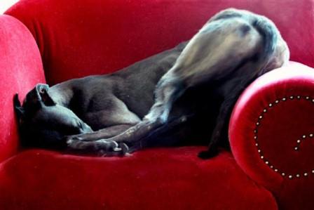 Hier wollte uns Molly einmal demonstrieren, was sie sich in ihrem neuen Zuhause auf jeden Fall wünscht: einen eigenen Sessel. Sich gemütlicher zu positionieren, das muß sie noch lernen;-)