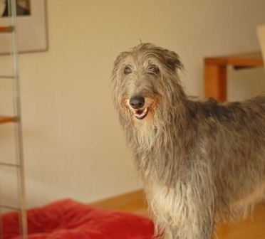 Deerhound Elsa, die größte in der Besuchertruppe