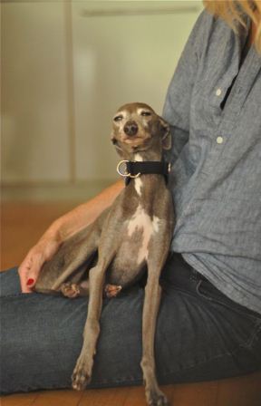 Barnaby (ebenfalls Inventar) schnüffelt an Mio