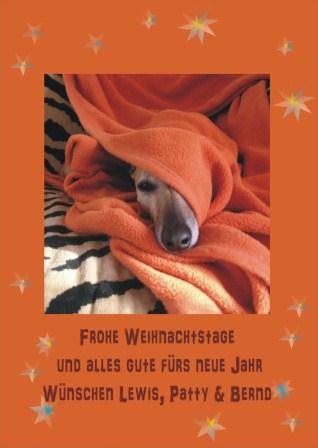 Die erste Weihnachtspost ist eingetroffen, Lewis und Familie schickt liebe Grüße.
