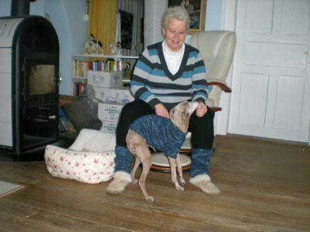 Und für Mrs. Smith (verm.11.2006) gabs schon vor Weihnachten Geschenke. Sie läuft jetzt im Partnerlook mit Frauchen Jacky durch die Stadt;-)