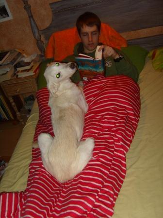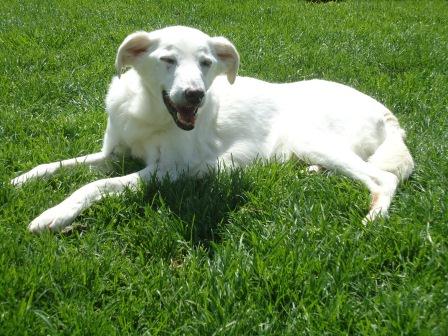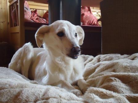 Er war überhaupt nicht begeistert, seine neue Familie mit etlichen Vierbeinern teilen zu müssen. Der Barsoi, der vom Garten ins Haus wollte, wurde an der Tür gestellt, um das Gesicht zu wahren, hat man dann halt was im Garten vergessen... Vor niemandem hatte Sparky Angst, es stelle sich aber schnell heraus, dass er die Oldies mochte, sie bekamen nie seine Zähnchen zu sehen.