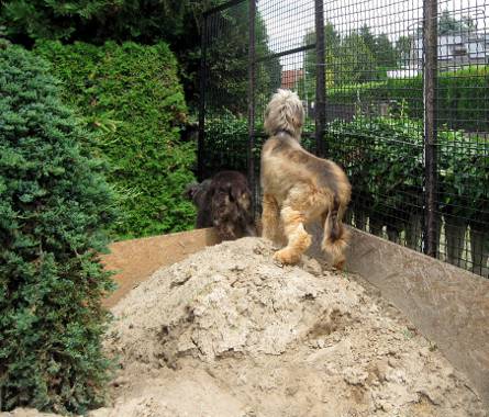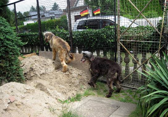 Ihre neue "Mama" starb fast vor Aufregung als die zwei endlich ankamen, die natürlich ziemlich durch den Wind waren. Der neue "Papa" hatte noch "kurz" die Zäune auf einer Seite professionell erhöht, daß auch im neuen Zuhause alles ausbruchssicher war. (Manchmal staunen wir ja schon wie flexibel unsere Leute sind :).)