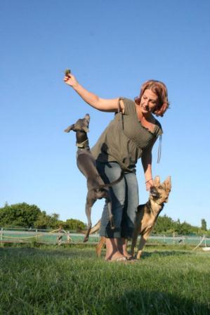 Vor etwas mehr als vier Wochen sind die beiden Windspielbuben Cosmo und Toni in ihr neues Zuhause gezogen. Wir sagten zu, alle Tierarzt-Kosten zu übernehmen, die mit Cosmos Bein zusammenhängen. Wie schon berichtet, fand der Neurologe leider nicht mal mehr den Hauch eines Nervs, so dass Cosmos Nervenabriss nicht mehr zu "reparieren" war, es mußte abgenommen werden. Cosmo hat inzwischen alles gut weggesteckt und fühlt sich viel wohler und "unbehinderter" ohne den Ballast des gefühllosen Vorderbeinchens. Sicher, für uns Menschen ist es ein ungewohnter Anblick, aber Cosmo springt, hüpft und ist voller Lebenslust und sein Kumpel Toni ist richtig erwachsen geworden.