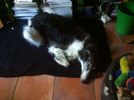 Nun ist die alte Maus am Samstag abgeholt worden, sie stieg freiwillig ins Auto, schlief fast die ganze Fahrt, legte sich Zuhause aufs Sofa, hat gefressen ohne Probleme und scheint auch sonst sehr glücklich zu sein. Das neue Frauchen mit und wir können nur sagen: Alles, alles Liebe! Wir freuen uns ebenso!