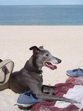 Gerade haben wir wunderbare 10 Tage auf der Insel Sylt verbracht. Percy fand es herrlich an den endlosen Stränden mit anderen Hunden zu wetzen, den Geruch von Hasen in der Nase zu haben, Freiheit und Weite zu geniessen. Ein kleines Bad im Schlick kam bei der Möwenjagd mal dazwischen, da mußte halt geduscht werden. Ansonsten hat er den großen Garten an der Ferienwohnung genossen oder es sich im Strandkorb gemütlich gemacht. Restaurantbesuche waren kein Problem, auch wenn es scheinbar absolutes Neuland für ihn war, genauso wie Fahrstuhlfahren im Hotel. Alles hat er willig mitgemacht. Die Hauptsache war, dass das neue Herrchen dabei war und er sich irgendwann im kuscheligen Bett unter der Decke verschwinden konnte. Er hat es verdient."