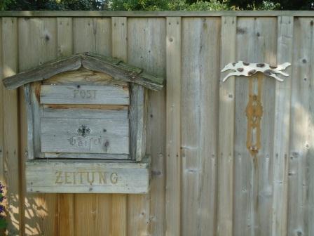 davor hing da eine alte Eisenglocke, deswegen das Muster auf dem Holz. Schön ist der Barsoi, gell. Und frosthart!