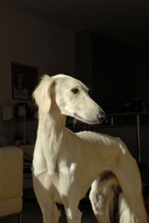 Seit gestern Abend begeistert ein drei Jahre alter Salukirüde sein Pflegefrauchen und auch das Pflegerudel;-)