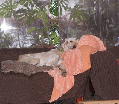Und unsere Holly war die glückliche Auserwählte, die sich auch ganz lieb durchkrabbeln ließ. Zusammenführung mit vorhandener Afghanen-Dame im Stinkezimmer klappte auch. Holly ins Auto gepackt und ganz leer war es wieder bei uns.