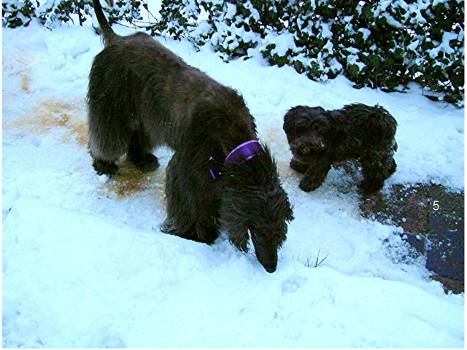 "Anbei ein paar Fotos von unseren beiden Chaoten. Im Garten toben ist für sie das Größte, wir denken Mireille fühlt sich auch schon etwas zuhause. Im Haus ist sie brav aber alleine bleibt sie nicht gerne, hoffen daß es noch besser wird."