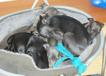 Birgit schickt uns ihr Quintett, links vorne in schwarz der schlafende Chasing;-)