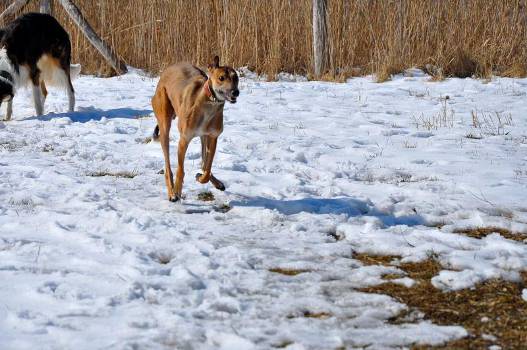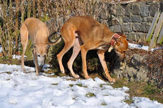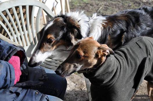 Konnte mich für kein Foto entscheiden, darum einige mehr, Du siehst, insbesondere mit meinem knapp dreijährigen Barsoi-Chartoj-Mix (3/4 B. + 1/4 Ch.) hat er hier einen richtigen Renn- und Tobekumpel."