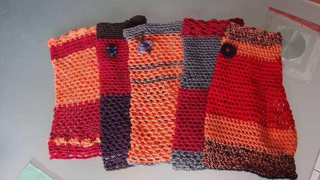 Große Mühe hat sich unsere Renate gemacht: Sie hat extra für uns fünf Fressmützen gehäkelt. Wir wissen ungefähr wieviel Arbeit so etwas macht und freuen uns natürlich umso mehr.