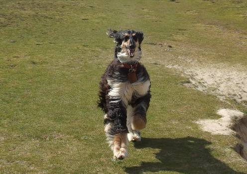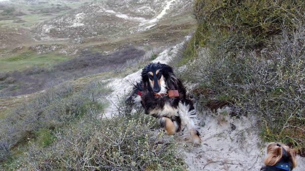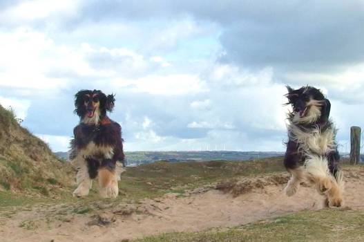 Wir haben hier viel Spaß, denn die Afghanen dürfen jeden Tag frei laufen, was wir zu Hause bisher nur den Yorkies zugestehen.