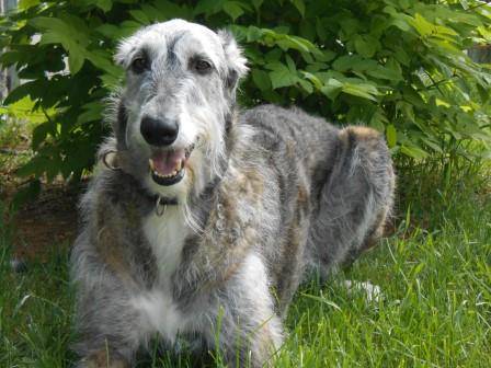 Ophelia ist eine echt gelungene Mischung aus Irish-Wolfhound und Barsoi. Das fünfeinhalb Jahre alte Mädchen hat sich im Welpenalter einen Beinbruch vorne links zugezogen. Dies wurde operiert, aber das Bein ist ein wenig krumm. Deshalb und auch weil Ophelia zu den Großen gehört, suchen wir für sie ein ebenerdiges Zuhause.