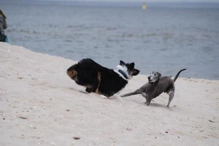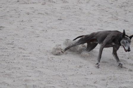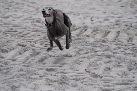 "...Percy, der ungarische "Strassen-Whippet", hat sich also nach 1 Jahr bestens eingelebt, geht täglich brav mit in die Tierarztpraxis von Herrchen, macht es sich dort auf dem Schreibtischsessel bequem und schaut sich so die Patienten an, wie sie diverse Behandlungen über sich ergehen lassen müssen. Dabei macht er sich natürlich auch nützlich, indem er für Ablenkung und eine entspanntere Atmospäre im Behandlungsraum sorgt und so manchem Hund zumindestens etwas die Angst nimmt. Bei der Vergabe der Belohnunsleckerchen steht er dann natürlich in erster Reihe! Aber das Leben besteht nun mal nicht nur aus Arbeit und so ist er auch viel in der Natur unterwegs, bei der "Oma" im Garten oder eben im Urlaub. So gerade wieder einmal auf Sylt, wo er einfach seine Freiheit genossen hat (Bilder anbei). Er ist ein ganz vorbildlicher Hund, ehrlich und geradeaus, liebebedürftig und sensibel und ist trotzdem der Chef vom Stadtwald. So sendet er also ein paar Urlaubserinnerungen und wünscht allen "Suchenden" viel Glück in einem neuen Zuhause."