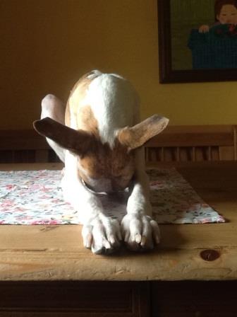 Franzi hilft schon mal mit, sie betet zum Wettergott.