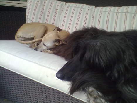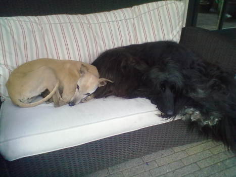 Hier zwei Foto von Dalai, vermittelt im Mai 2013, und ihrem Freund Fallon. Vielen lieben Dank!