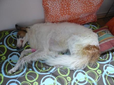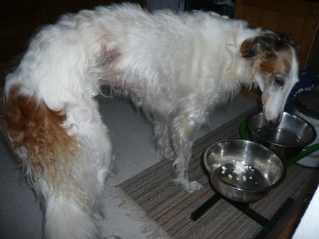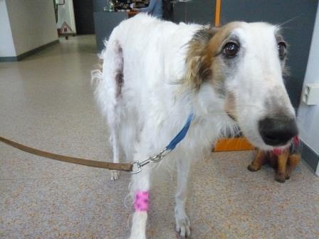 Nachdem wir in letzter Zeit soviele Tierarztbesuche zu bewältigen hatten, mußte jetzt auch noch unser "ex-Patenhund" Flöckchen dran glauben. Die zehn Jahre alte Barsoiline hatte eine Gebärmuttervereiterung und mußte ausgeräumt werden, dabei haben wir dann auch gleich den Tumor wegschnippeln lassen. Das Ganze war am Samstag, inzwischen geht es ihr wieder besser. Flöckchen lebt ja bei unserer Andrea, die TA-Kosten übernimmt die iWi. Flöckchen ist also quasi "i.P."