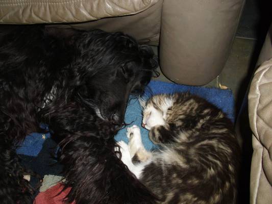 Wie man sehen kann, mögen sich Püppy und ihre Katze sehr....