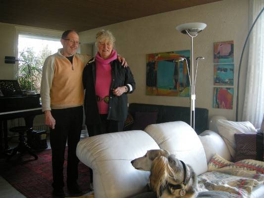 "Ich möchte Ihnen einmal herzlich danken dafür, dass Sie uns den Clinton – er heisst jetzt Clinti – “vorgestellt” haben. Er hat mich erobert ‘im Sauseschritt’ mit seinem enormen Hunde-Charme. Er hat meine Lebensqualität eindeutig verbessert: er ist ein liebenswürdiger, kontaktfreudiger Kumpel, der wieder mehr Betrieb in die Bude gebracht hat, die Tessa ist viel aufgeweckter, ich selber bin aufgeweckter, denn der Clinti braucht doch wieder zweimal am Tag einen anständigen Spaziergang an der (zur Zeit ziemlich) frischen Luft und zwar im flotten Schritt – bei der Tessa war das eher ein interessiertes Herumstehen. Auf dem Nachmittagsspaziergang kommt die Tessa mit, es geht meistens in den Wald, etwas langsamer, aber immerhin, und wenn der Rundgang dem Ende zugeht, findet sogar Tessa zu einem sehr mässigen Trott. Also: der Clinti ein eindeutiger Gewinn ! Auf dem Foto liegt er auf seinem Sofaplatz , die Tessa war nicht zu bewegen, auch aufs Bild zu kommen. So kommt sie halt separat , und man sieht’s gleich, sie ist hellwach.