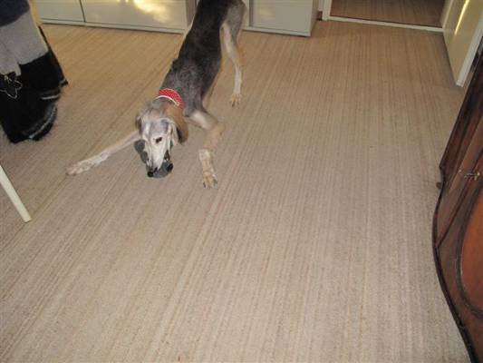 So sieht eine Barsoi-Dame im 13. Lebensjahr aus, die einen neuen schicken Mann bekommen hat - unseren Saluki Clinton.