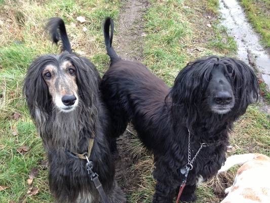 Un da die Hübsche erst zwei Jahre alt war mußte auch noch eine passende Spielgefährtin her - die kleine schwarze Daphi (im Juni 2011). Fleur war begeistert und Frauchen gewöhnte sich langsam an den Gedanken drei Afghanen zu haben. Damals hatten wir wie so oft, viel zu viele junge Afghanen auf Pflegestelle, starteten einen Hilferuf und Silke erklärte sich bereit einen in Pflege zu nehmen. Der Rest ist Geschichte :)
