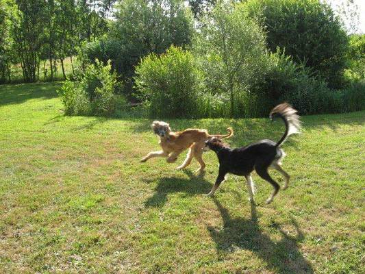 Nachdem wir Wyna zu Beginn aufgepäppelt hatten, hatte sie bei uns zu einem geliebten, neuen, fröhlichen, harmonischen und entdeckungsreichen Leben gefunden. Es machte ihr Spass am See spazieren zu gehen, den Enten und Schwänen zuzusehen, die Welt zu beobachten und was es alles noch so Interessantes gab. Düfte aufzunehmen und an der Leine selbstverständlich, kurze Sprints mit Herrchen machen. In Frankreich wo wir oft waren, machte es ihr Spass mit ihren zwei Freunden auf 4000m2 Terrain rumzutollen oder Wettrennen rund um den Teich zu veranstalten. Wenn man ihr so zusah – es war eine echte Freude – uns schien, einen jungen Hund vor uns zu haben. Es ist schwer die Lücke zu ertragen, aber im Wissen, dass ihr Geist immer noch hier ist, macht dies ein wenig leichter."