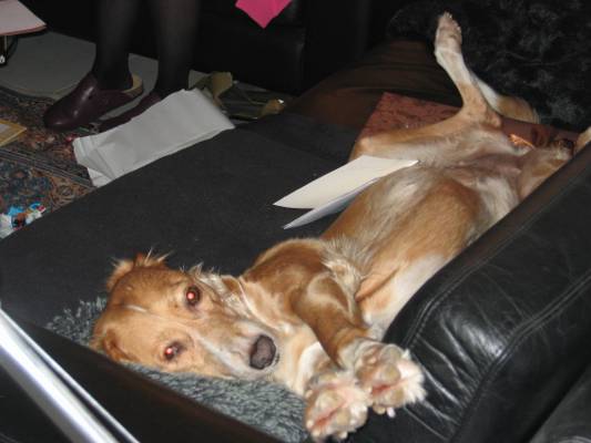 Als "Lohn" erhielten wir auch Bilder von unserer mittlerweile fast 10 Jahre alten Shirin (ehemals Rita, vermittelt 2008). Wir wissen immer noch nicht genau, ob die Maus eine reinrassige Saluki-Hündin ist, aber eigentlich auch egal. Jedenfalls ist Frauchen glücklich mit ihr und sie sieht ebenfalls so aus, auch wenn sie als kastriertes Mädchen eben immer Hunger hat und Frauchen ein gutes Herz :)