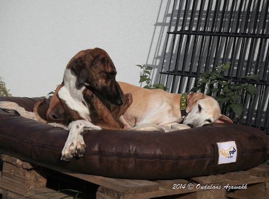 Rizis Mama ist nämlich auch gelegentliche Azawakh-Züchterin. Und das gibt es nicht oft, daß die Zusammenarbeit so gut funktioniert.