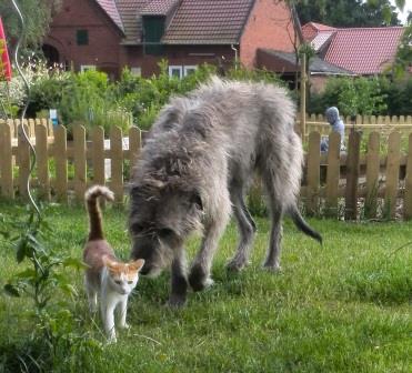 Vorgestern zog auch unsere hübsche Hanni in ihr Zuhause um. Ihrem neuen Frauchen ist die letzte Dogge mit 9,5 Jahren verstorben, es gab nur noch eine Katze. Haus und Garten und vieeeel Vorsicht in Bezug auf neuen Hund an vorhande Katze gewöhnen bedeutet. Aber das wird kein Problem werden, denn das Frauchen hat schon immer erwachsene Tierschutzhunde zu ihren Katzen dazugesetzt und es gelang ihr immer, dass beide friedlich miteinander lebten.