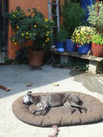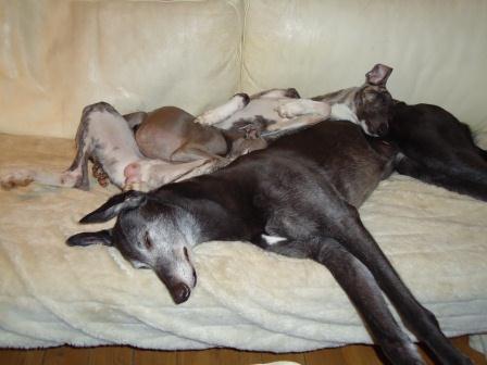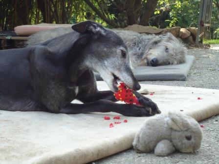 Gestern mußten wir Abschied von Amy nehmen. Die liebe Greyhound-Hündin kam zusammen mit ihrer Gefährtin Cynty im Januar 2011 aus einem Tierheim zu uns. Cynty war damals 13 und Amy 10 Jahre alt. Schnell wurde klar, Cynty wird ein Patenhund, sie verstarb dann leider im August 2011.