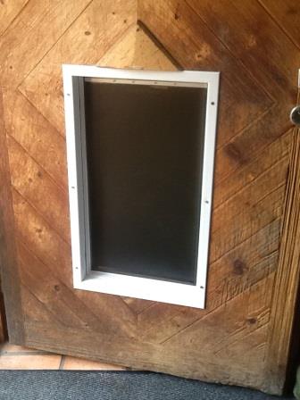 so sieht eben eine Holztür nach mehreren hundert Pflegehunden aus... aber die Hauptsache ist ja die KLAPPE :-)