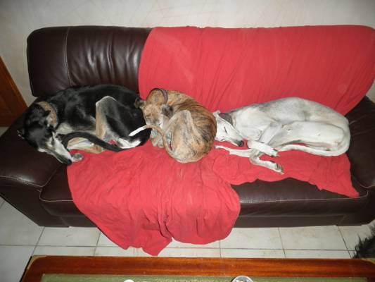 Jedenfalls fiel auch ihr 13. Geburtstag wieder ins Wasser und ihr irres Frauchen meinte, den Spaziergang am Geburtstag könne man unmöglich ausfallen lassen. Im Nieselregen traf man dann noch einen aus ihrer Sicht "Wasweißich-Mischling" und nicht mal heute durfte sie diesen Eindringling kneifen. Im Gegenteil Frauchen fluchte "Du verdammtes olles Azawakh-Vieh, wirst doch nicht noch an Deinem 13. Geburtstag hier einen Hund fressen!" Nix darf man.... :(