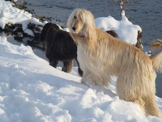 Sieht doch auch toll aus, wie der hübsche Kerl mit seiner rotbrindle Dame im Schnee ohne Leine in Freiheit spielen darf.