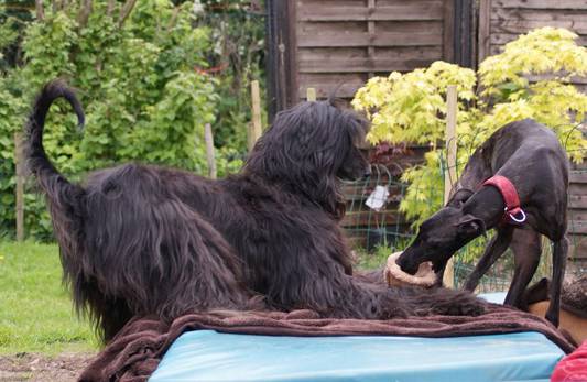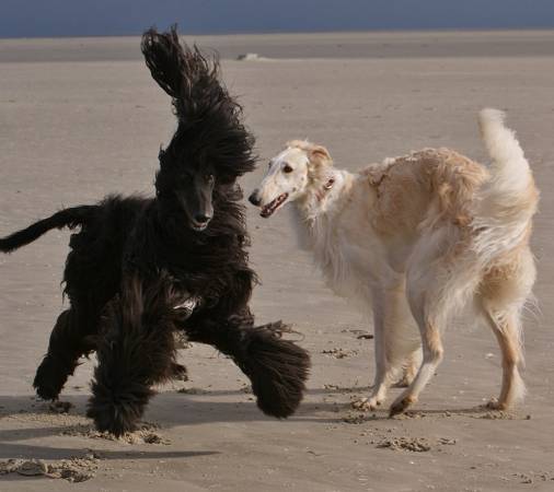 "So ! Nun weiß auch ich, was man EIGENTLICH mit seinen Afghanen macht ...Aus organisatorischen Gründen, aus Abwechslung und als kleine Lernaufgabe habe ich beschlossen, für einige Besorgungen in der Stadt einfach mal meine "Landeier" mitzunehmen. Stadt machen wir sonst eher nicht. Wozu auch. Donnerwetter was für ein Aufsehen ! Zwei Afghanen in der Stadt ! Ok, Husum ist Husum, mittlere Kreisstadt im hohen Norden Deutschlands ... und nicht Mailand oder München, aber ich hätte auch nicht mehr Aufmerksamkeit bekommen können, wenn ich nackig und mit afrikanischen Strauß an der Leine unterwegs gewesen wäre. Erübrigt sich fast zu erwähnen, dass beide Affenmädels sich absolut vorbildlich an der Leine verhalten. Egal was immer auch kommen mag ... und nicht nur das, sie genießen es regelrecht, wenn sie von den Leuten bestaunt werden und lassen sich auch gerne streicheln. Ich habe ja lange Beine und gehe recht forsch, so dass die Mädchen meistens im leichten Trab neben mir her schweben. Ein ästhetischer Anblick, weiß ich ja, aber ich habe es noch nie in Schaufensterscheiben kontrolliert Überall drehen sich die Menschen nach uns um und wo wir stehen bleiben, haben wir sofort Menschen an unserer Seite, die uns ansprechen. Sehr sicher im Hunderassen-Raten sind sie nicht, die Nordfriesen, aber durchweg begeistert von sooo schönen Hunden ....