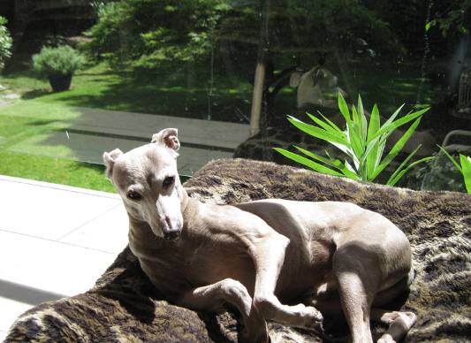 Nachdem Windspiel Pini gestorben ist, haben wir mal geschaut, was ihr damaliger Gefährte Alfredo (vermittelt Februar 2004)so macht. Na was wohl bei dem Wetter: In der Sonne aalen... Danke liebe Diana!
