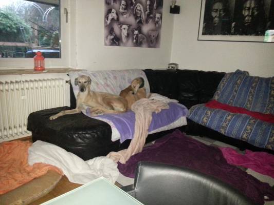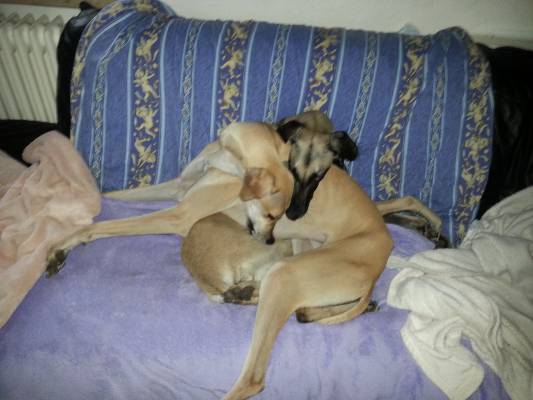 Unsere kürzlich vermittelte Sloughi-Hündin Joumana hat uns erste Fotos geschickt. Sie darf ja nun mit drei Sloughi-Mädels zusammenleben und wir finden, daß das schon recht gemütlich aussieht. Uns wurden aber noch Superfotos versprochen :)