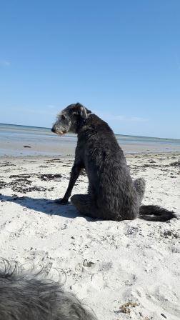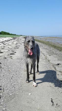 Deerhound Kifi war mit seiner Familie in Dänermark im Urlaub. Die Fotos haben wir von Facebook geklaut:-)