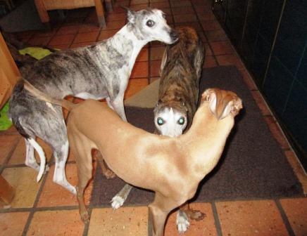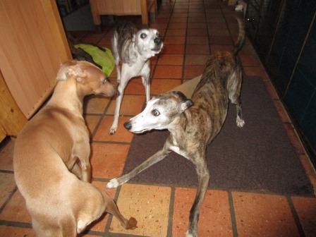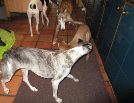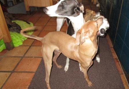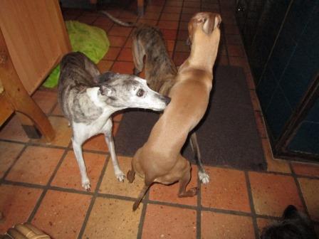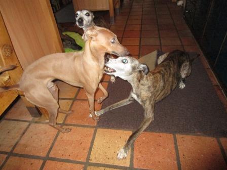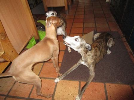 Bei Himpelchen haben wir erst, nachdem wir sie auf dem Rücken auf uns drauf liegen hatten, gemerkt, dass sie zwei Mamatumore hat. Wir lassen sie in Kürze entfernen. Die Erfahrung hat gezeigt, dass ein Whippet danach noch sehr alt werden kann. Wir hoffen für Himpelchen das Beste.
