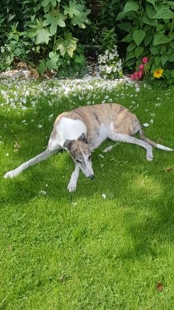 Der schöne Grey kam im Juli 2009 zu uns und zog im Februar 2010 bei Karin und Thomas als erster Hund ihres Lebens ein - die beiden hatten uns schon öfters gefragt, besassen damals aber etliche Katzen, die keine Hunde kannten.