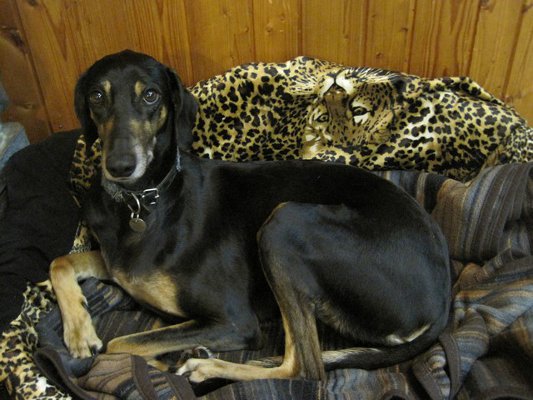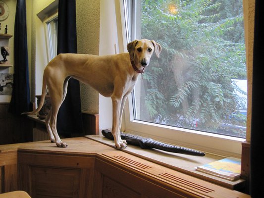 Dort lebt auch noch unsere Saluki-Sloughi-Mix-Hündin Nane (verm. August 2006). Bis letztes Jahr war unser Sloughi Pluto - zugleich auch der Papa von Nane- (verm. August 2006) der Hüter der verrückten Weiber. Da er verstorben ist, fehlt nun wieder ein Mann im Haushalt.