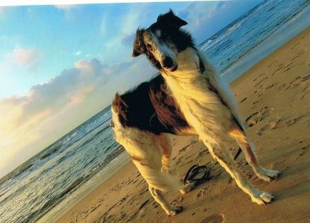 ".... nach zweieinhalb Jahren in meiner Obhut senden July und ich Ihnen herzliche Grüße in der Adventszeit. Wie sie an den Bildern in der goldenen Abendsonne an der Nordsee erkennen können, präsentiert July sich in bester Form. Er ist mit etwa 12,5 Jahren noch wunderbar gelenkig in seinen Begweungen, ist nach wie vor ein sehr lieber Kerl und okommt mit allen anderen Hunden gut zurecht. Fremde Hunde müssen sich aber erst an seine Größe gewöhnen.