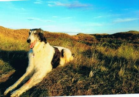 July fühlt sich sehr wohl bei mir und ist mir ein lieber Begleiter. In seiner Würde und Erhabenheit, diew ohl so nur einem Barsoi zueigen ist, begeistert er mich immer wieder aufs Neue. Da ich allein im Hause lebe, ist er mir ein lieber Partner. Und Jly hat ein gutes neues Zuhause gefunden. Somit sind wir einander sehr eng verbundn, was durch viele Streicheleinheiten unterstützt wird, wobei er mir zu meiner Freude entgegen aller Barsoi-Manier iinzwischen seinen großen Kopf entgegen reckt. (Anmerk. d. Red.: GANZ NORMAL:-)