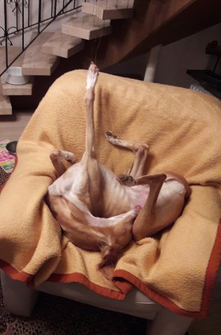 "Wir wollten uns mal wieder bei Ihnen melden und auch ein paar Photos schicken. Charime hat sich jetzt prima hier eingelebt und hält unseren Haushalt auf Trab (so wie sich das für einen bald 2 jährigen Rüden so gehört ;-) Er hat mittlererweile die "Rudelführung" bei den Vierbeinern übernommen, aber ich habe das Gefühl, dass unser alter Hund gar nicht so böse ist, abgeben zu können. Er liegt nun doch viel und gerne in der Sonne und ist im Freilauf jetzt so entspannt, dass wir ihn (das erste Mal in seinem Leben) wirklich ohne jegliche Bedenken ohne Leine laufen lassen können. Charime haben wir an eine Schleppleine gewöhnt und somit sind unsere Spaziergänge für alle sehr entspannt. Charime hat (entgegen unserem Vorhaben) nun natürlich doch das Sofa erobert aber er hält sich an die Vorgabe, nur auf seiner Seite mit Deckchen zu liegen.