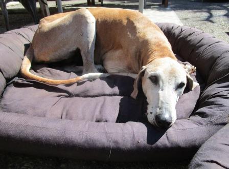 Am Dienstag mußten wir uns von unserer Telou verabschieden. Das alte Azawakhle kam im August zu uns und da sie so "speziell" war, blieb sie. Speziell nicht nur im azawakhianischen:-) Sinn sondern auch im gesundheitlichen. Sie hatte unfallbedingt eine kaputte Hüfte, ein zertrümmertes Sprunggelenk und obendrein eine Ladung Schrot im "gesunden" Bein.